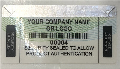 2,000 Security Label with Holographic Stripe Partially Destructible Size 2" x 1" (51mm x 25mm). >Click on item details to customize.