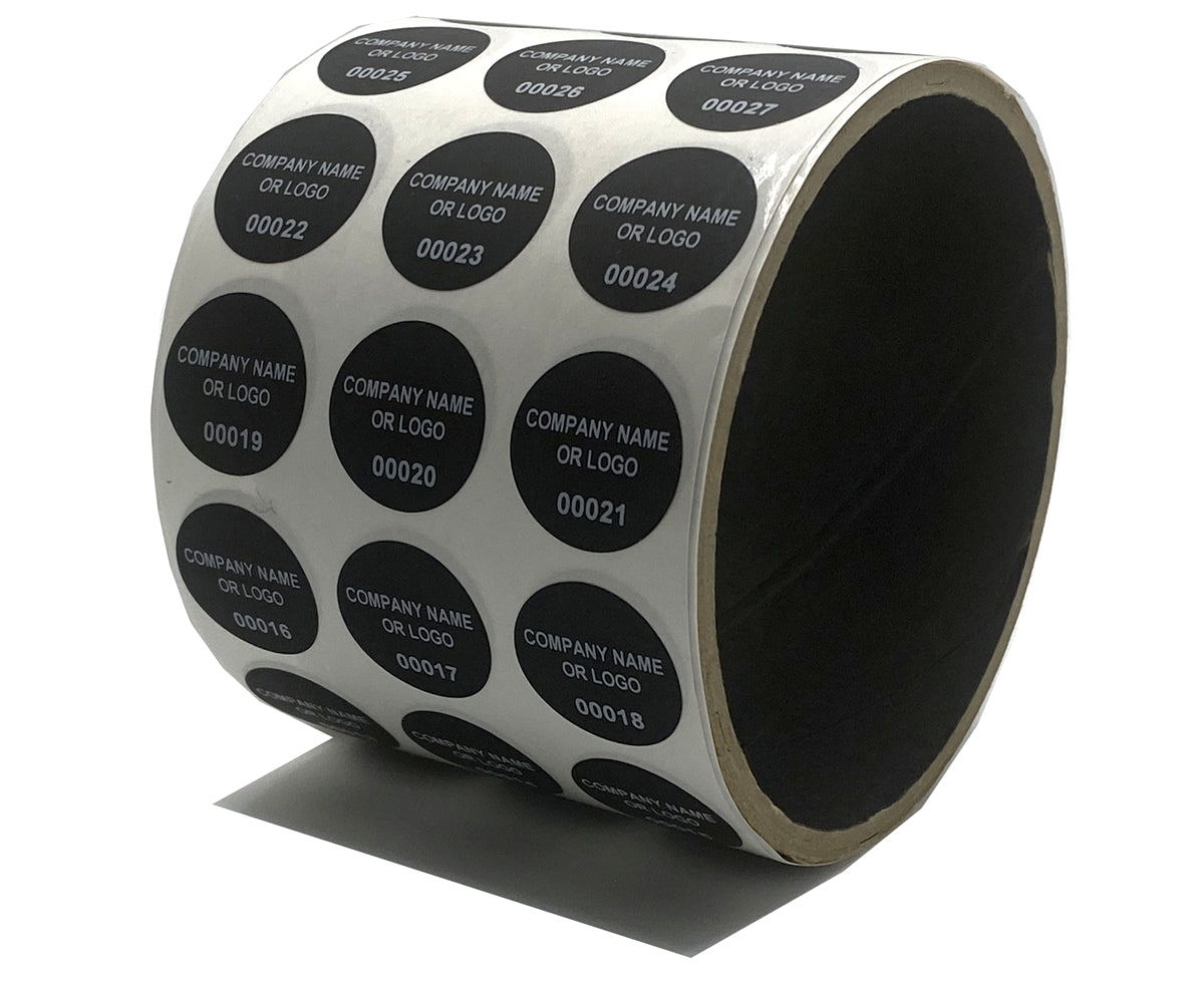 1,000 Non Residue Black Tamper-Evident Stickers TamperGuard® Security Label Seal , Round/ Circle 0.75" diameter (19mm) >Click on item details to customize.