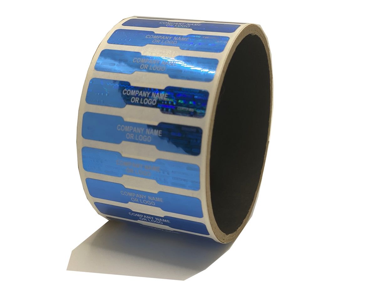 10,000 Blue Tamper Evident Security Hologram Label Seal Sticker,Dogbone 1.75" x 0.375" (44mm x 9mm). CustomPrinted. >Click on item details to Customize.