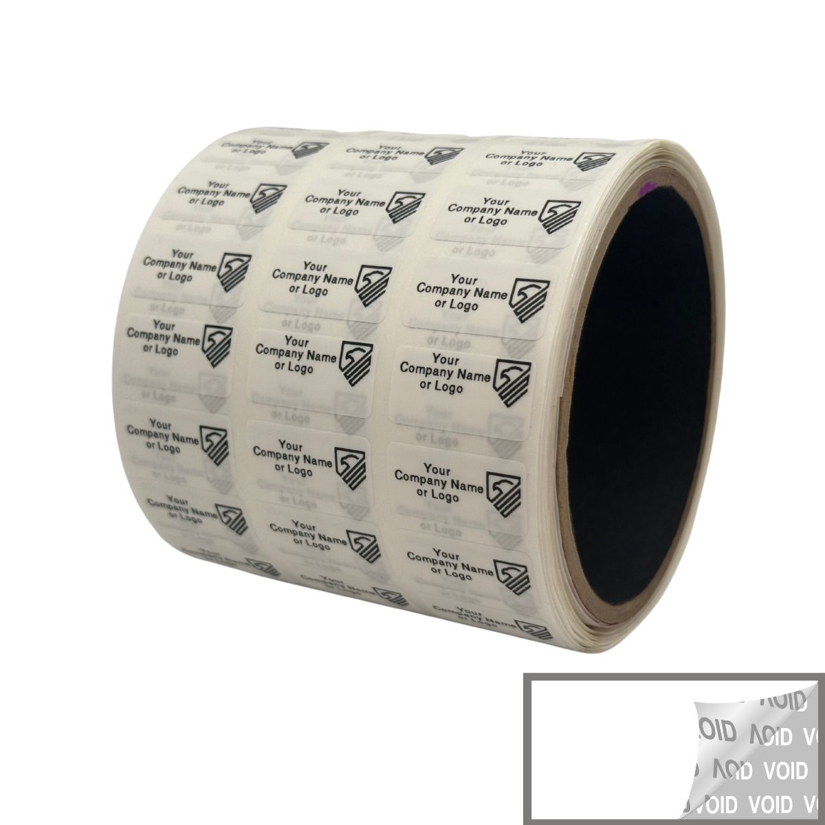 2,000 Tamper Evident Security Labels White TamperVoidPro Seal Sticker, Rectangle 1" x 0.5" (25mm x 13mm). Custom Printed. >Click on item details to customize.