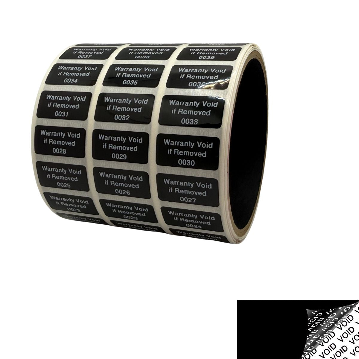 2,000 Tamper Evident Black Security Labels TamperColor® Seal Sticker, Rectangle 1" x 0.5" (25mm x 13mm). Printed: Warranty Void if Removed.
