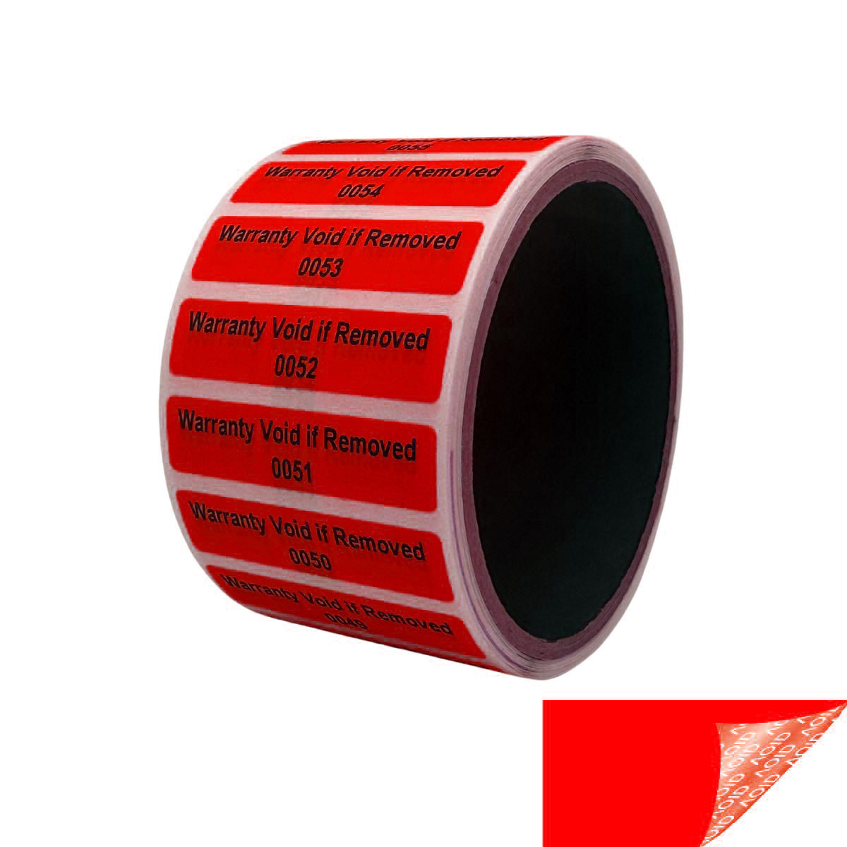 5,000 Tamper Evident Red Non Residue Security Labels TamperGuard® Seal Sticker, Rectangle 2" x .5" (51mm x 13mm). Printed: Warranty Void if Removed + Serialized