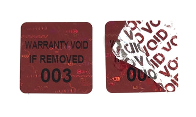 5,000 Red Tamper Evident Holographic Security Label Seal Sticker TamperMax®, Square 0.75" (19mm). Printed: Warranty Void if Removed + Serialization