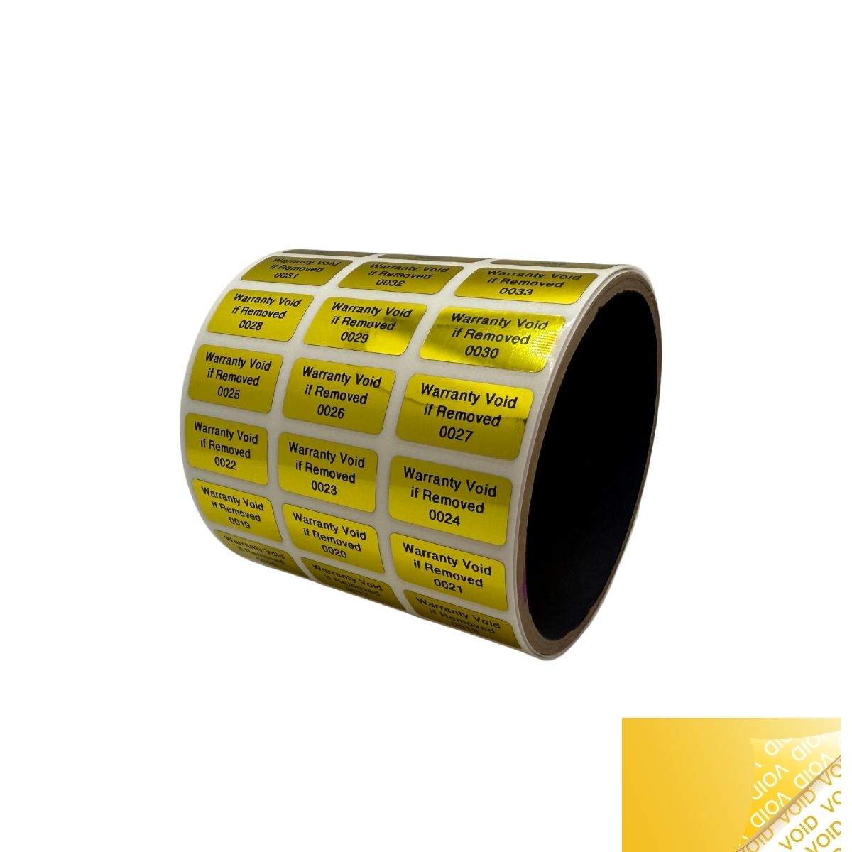 250 TamperVoidPro® Gold Tamper Evident Security Labels Seal Sticker, Rectangle 1" x 0.5" (25mm x 13mm). Printed: Warranty Void if Label Removed.