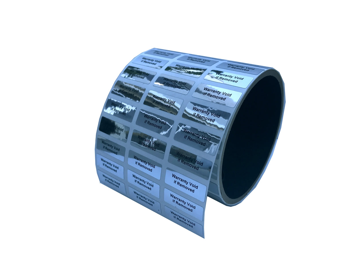 5,000 TamperVoidPro® Metallic Silver/ Chrome Tamper Evident Security Labels Seal Sticker, Rectangle 1" x 0.5" (25mm x 13mm). Printed: Warranty Void if Label Removed.
