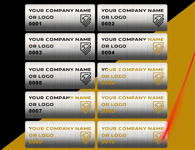 2,000 Brushed Chrome Finish Asset Identification Security Labels 1.5" x 0.6" (38mm x 15mm), Demetalized Laser Customization. >Click on item details to customize it.