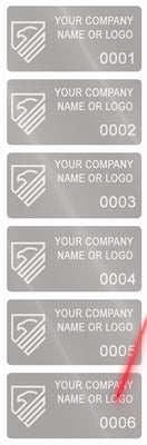 2,000 Silver Matte TamperGuard® Tamper Evident Security Label Seal Sticker Non Residue, Rectangle 2" x 1" (51mm x 25mm). Demetalized Laser Customization. >Click on item details to customize it.