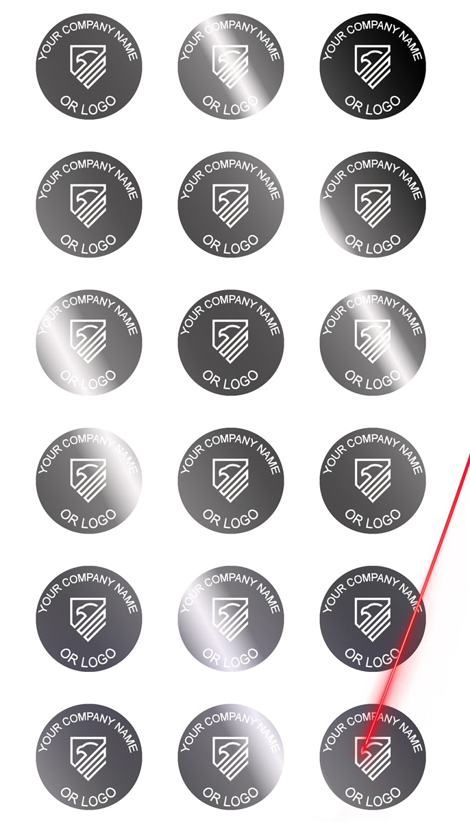 10,000 Silver Bright TamperVoidPro Metallic Tamper Evident Security Labels Seal Sticker, Round/ Circle 0.75" diameter (19mm). Demetalized Laser Customization. >Click on item details to customize it.