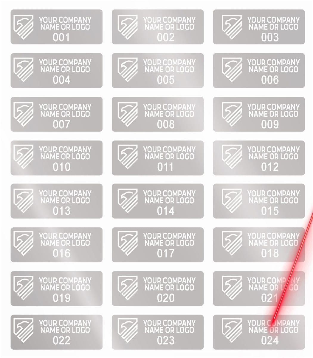 5,000 Silver Matte TamperVoidPro Metallic Tamper Evident Security Labels Seal Sticker, Rectangle 1" x 0.375" (25mm x 9mm). Demetalized Laser Customization. >Click on item details to customize it.
