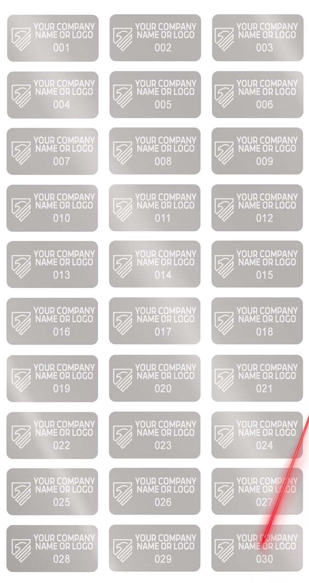 10,000 Silver Matte TamperVoidPro Metallic Tamper Evident Security Labels Seal Sticker, Rectangle 0.1" x 0.5" (25mm x 13mm). Demetalized Laser Customization. >Click on item details to customize it.