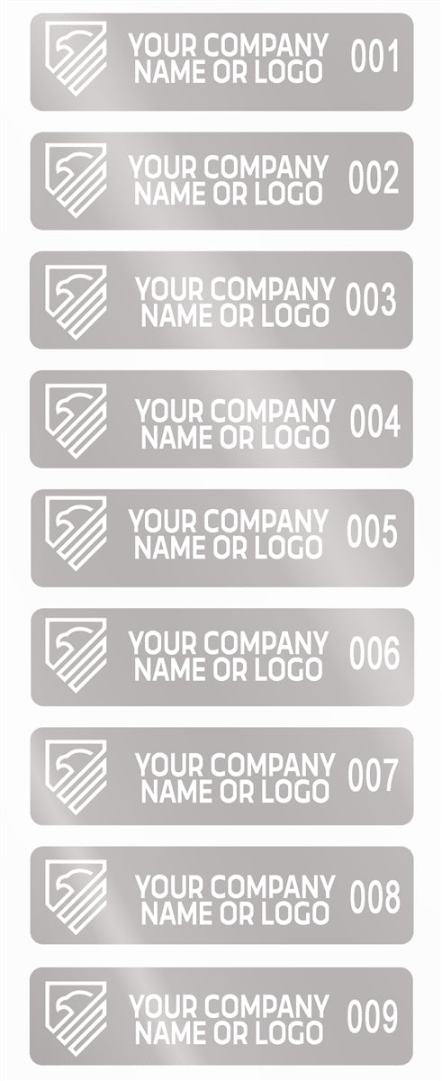 1,000 Silver Matte TamperVoidPro Tamper Evident Security Labels Seal Sticker, Rectangle 2" x 0.5" (51mm x 13mm). Demetalized Laser Customization. >Click on item details to customize it.