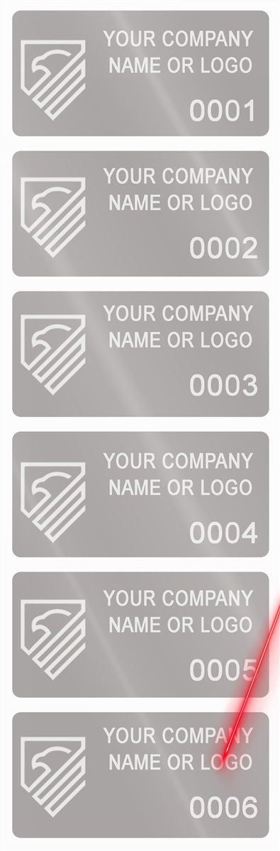 10,000 Silver Matte TamperVoidPro Metallic Tamper Evident Security Labels Seal Sticker, Rectangle 2" x 1" (51mm x 25mm). Demetalized Laser Customization. >Click on item details to customize it.