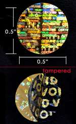 But that's just the beginning of what TamperMax¨ offers. Our commitment to innovation has led us to integrate a range of other advanced security features into our design. What sets our Hologram Stickers apart is their versatility. Typically applied on top of a generic hologram featuring essential words such as "Genuine," "Authentic," "Certified," "Valid," and "Secure," these stickers can be customized with your company's unique logos and serial numbers. These features work seamlessly together to fortify your product's defense against counterfeiters and unauthorized access. With TamperMax¨, you can rest assured that your assets are protected by cutting-edge technology and a dedication to your peace of mind. This plus the additional customization options makes the perfect combination of security and branding.