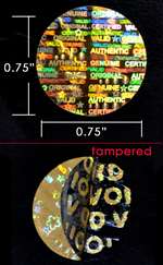 But that's just the beginning of what TamperMax¨ offers. Our commitment to innovation has led us to integrate a range of other advanced security features into our design. What sets our Hologram Stickers apart is their versatility. Typically applied on top of a generic hologram featuring essential words such as "Genuine," "Authentic," "Certified," "Valid," and "Secure," these stickers can be customized with your company's unique logos and serial numbers. These features work seamlessly together to fortify your product's defense against counterfeiters and unauthorized access. With TamperMax¨, you can rest assured that your assets are protected by cutting-edge technology and a dedication to your peace of mind. This plus the additional customization options makes the perfect combination of security and branding.