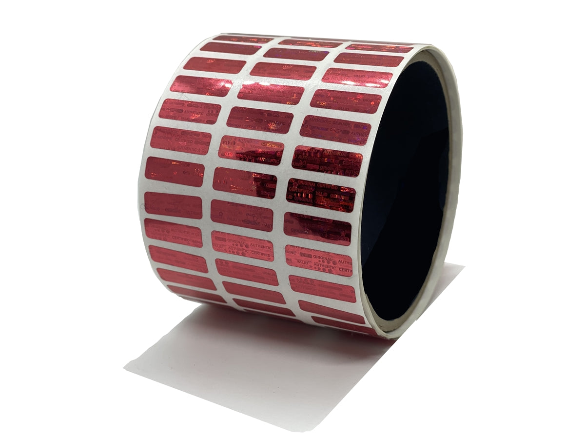 2,000 Red Tamper Evident Holographic Security Label Seal Sticker, Rectangle 0.75" x 0.25" (19mm x 6mm).
