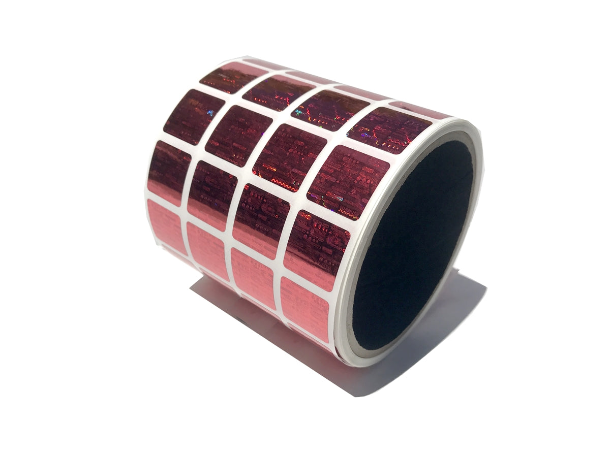 250 Red Tamper Evident Holographic Security Label Seal Sticker, Square 0.75" (19mm).