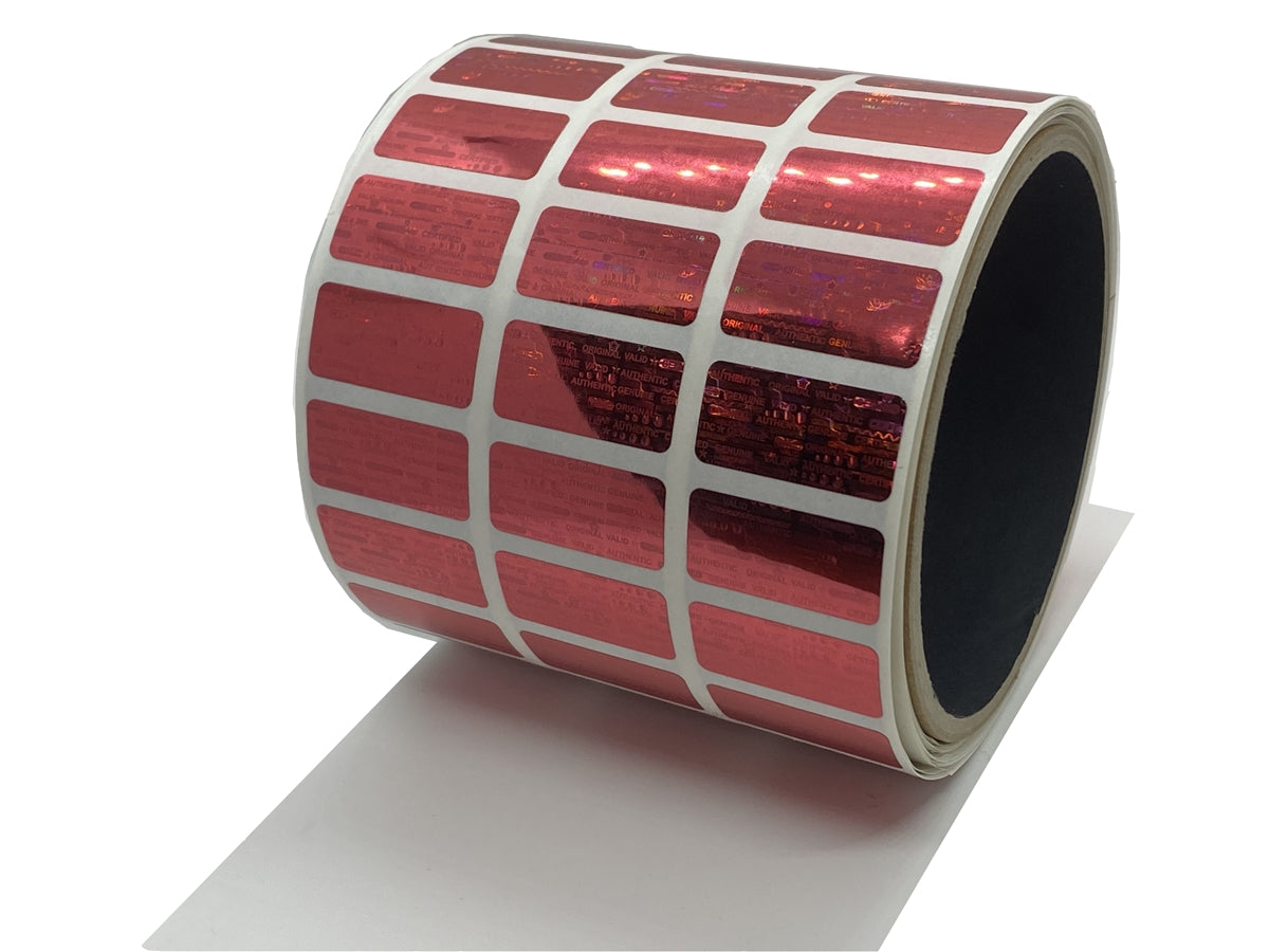 250 Red Tamper Evident Holographic Security Label Seal Sticker, Rectangle 1" x 0.5" (25mm x 13mm).